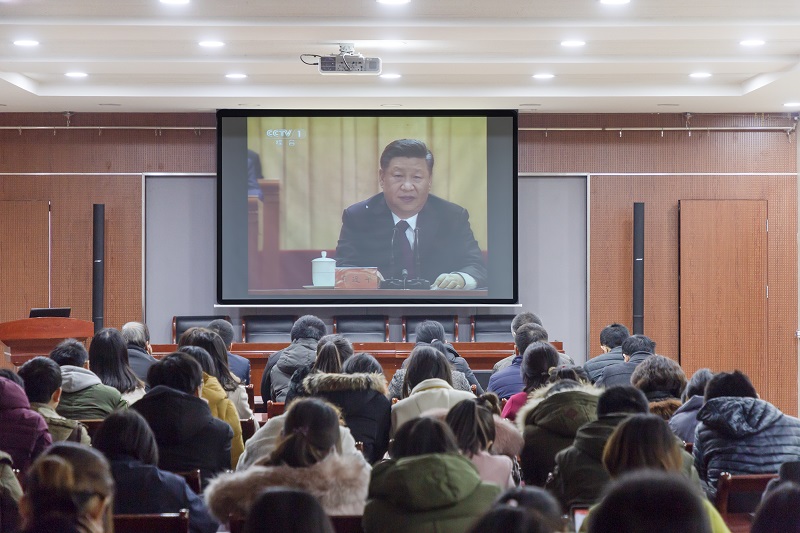 12月18日,beat365亚洲体育官方网站在生工楼报告厅组织观看改革开放40周年大会直播。公司党委书记韦萍、副经理李振江、副经理贾红华、副经理胡南等理论学习中心组成员和师生代表参加了此次活动。