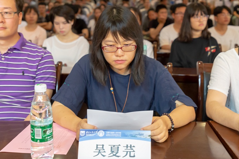 beat365亚洲体育官方网站经理郭凯分享了自己的求学经历,鼓励新生们“不忘初心,牢记使命,勇担重任,永不言弃”。郭经理指出,学习是老员工的主要任务,希望同学们能够将自身兴趣爱好和所学专业相结合,努力学习,为将来积淀力量。郭经理鼓励同学们要积极适应从高中到大学由被动学习到自主学习、由家庭生活到集体生活的变化,在平淡的生活之中寻找闪光点,朝着自己所定的目标不断迈进。2018级班级导师代表吴夏芫告诉同学们大学的目标不仅是完成学业,更要在丰富的课外活动中锻炼和提升自己,实现人生价值。生工类1802班顾奕敏、制药1804班徐逸凡作为新生代表发言,表达了努力学习、学以致用,在新征程的道路上不负韶华的愿景。