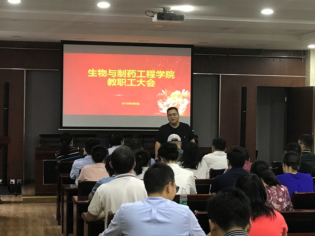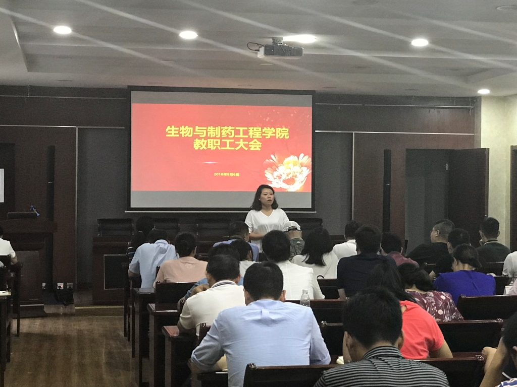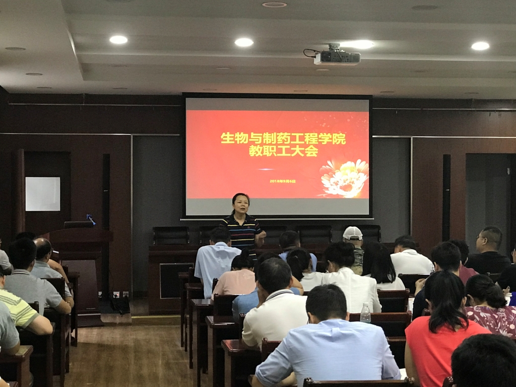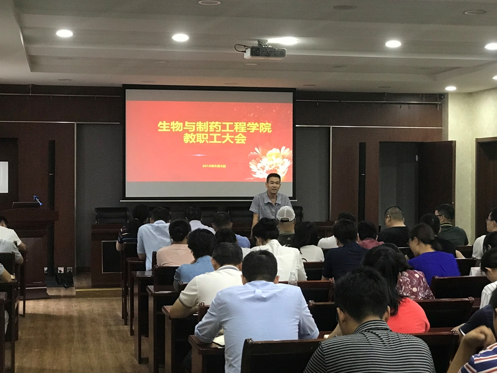 9月6日下午,beat365亚洲体育官方网站在生工学科楼A1一楼报告厅召开了新学期全院教职工大会。公司党委书记韦萍,经理兼党委副书记郭凯,副经理胡南、贾红华等出席,全院教职工参加了会议,会议由韦萍书记主持。
