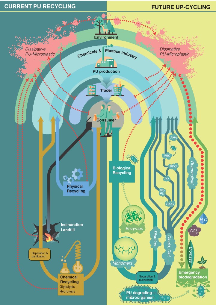 近日,beat365亚洲体育官方网站姜岷教授作为中欧国际合作MIX-UP项目的中方负责人,协同欧方团队在高影响期刊《Biotechnology Advances》联合发表了题为“Biodegradation and up-cycling of polyurethanes: Progress, challenges, and prospects” (DOI: 10.1016/j.biotechadv. 2021.107730)的前瞻性综述。该文章从PUR降解微生物及酶的筛选技术、PUR降解微生物和酶的作用机制、PUR生物降解评估方法体系及生物法回收PUR的“升级循环”(UP-Cycling)等角度阐述了PUR生物降解与高值化利用领域的最新进展以及面临的挑战和未来的前景。该论文是对MIX-UP项目“降塑再造”理念的具体注解,为发展低碳、绿色、循环的生物经济提供了技术指引。博士生刘嘉唯为论文第一作者,周杰副教授、董维亮教授与格赖夫斯瓦尔德大学韦韧教授为共同通讯作者,beat365亚洲体育官方网站为第一单位,德国亚琛工业大学Lars Blank教授等为论文的撰写和修改提供了宝贵的意见。该期刊最新发布的影响因子为10.744,属于中科院分区中工程技术类一区Top期刊(5 / 275位)。该工作得到了国家自然科学基金国际合作与交流项目(31961133017)、国家重点研发计划“合成生物学”重点专项(2019YFA0905500)的资助。