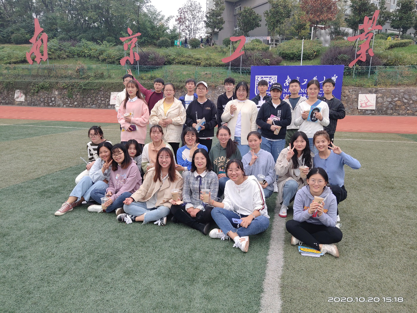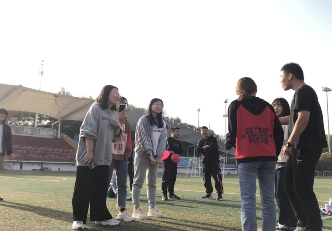 班委成员精心策划,活动形式丰富多彩。首先以简单的“抱团游戏”作为热身活动,充分调动大家的热情与积极性。接下来,同学们以分组合作的形式,共同参与完成了“纸片传递面粉”、“背对背运气球”、“你画我猜”等系列活动。欢快的游戏环节结束,秋日暖阳下,同学们围坐一起共同品尝秋天的第一杯奶茶,敞开心扉、共话理想。