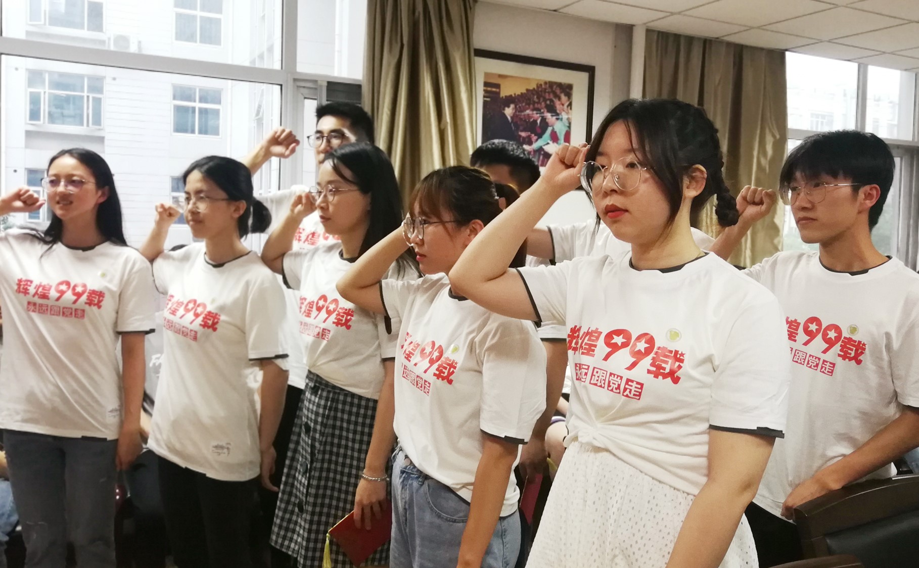 活动开始后,全体毕业生党员在支部书记闫晋源同学的带领下,面向党旗重温入党誓词。随后,毕业生党员们结合入党以来的经历,畅谈初心,共话未来,大家纷纷表示将以毕业为新的起点,以党员的标准更加严格的要求自己,不负师长期许,不负母校期望。最后,公司党委副书记吴杰老师为毕业班党员们送上“生日祝福”,并寄语毕业班党员们要珍视党员身份,保持入党初心,在新的人生征程和新的工作岗位上继续发挥先锋模范作用。