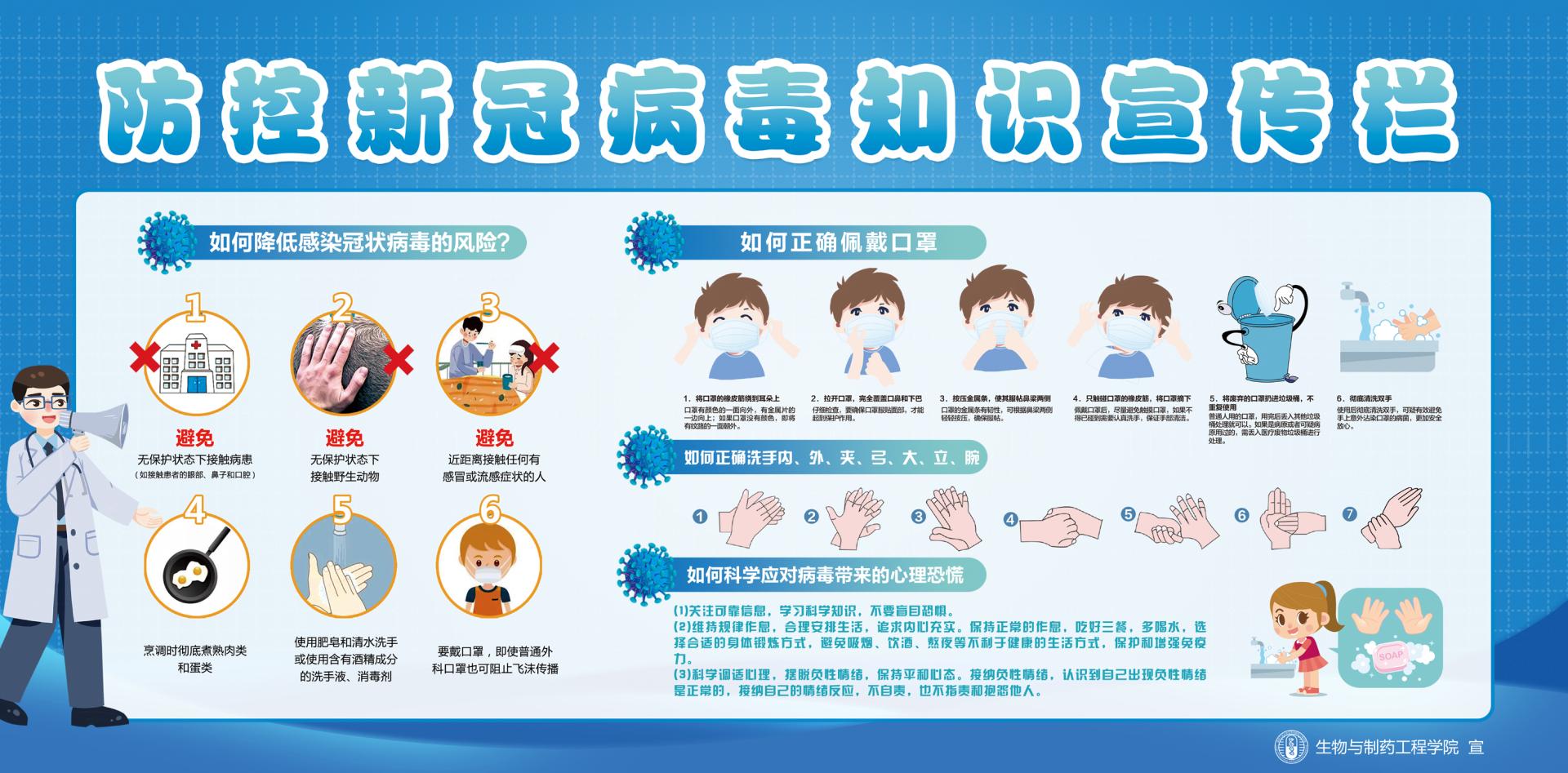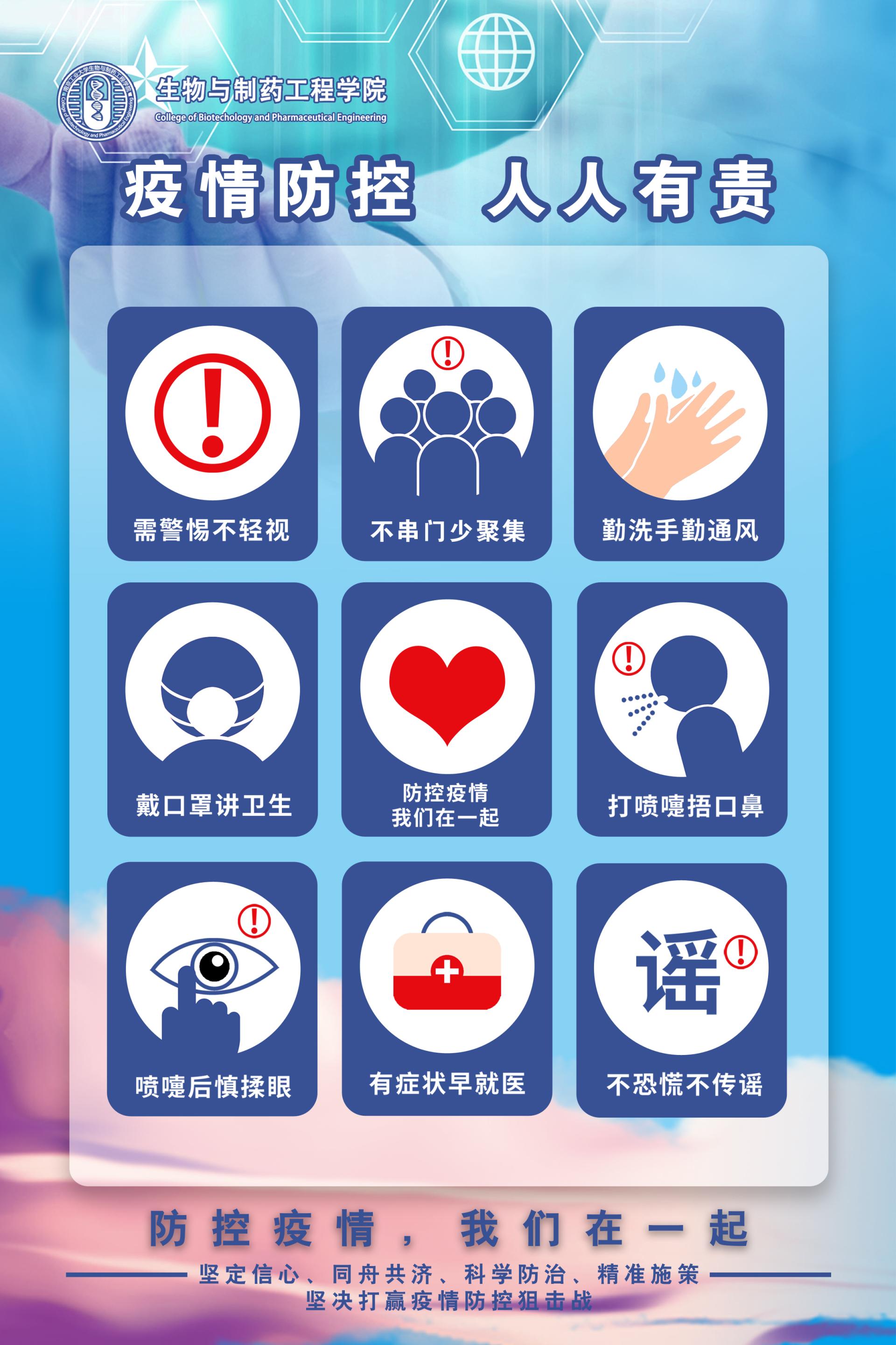 beat365亚洲体育官方网站为切实做好疫情防控工作,在符合消防管理的前提下,临时封闭了生工A1、B1、C1楼非主要出入口,对进入大楼的师生全面实行登记,并在楼内醒目位置张贴了疫情防控宣传海报。