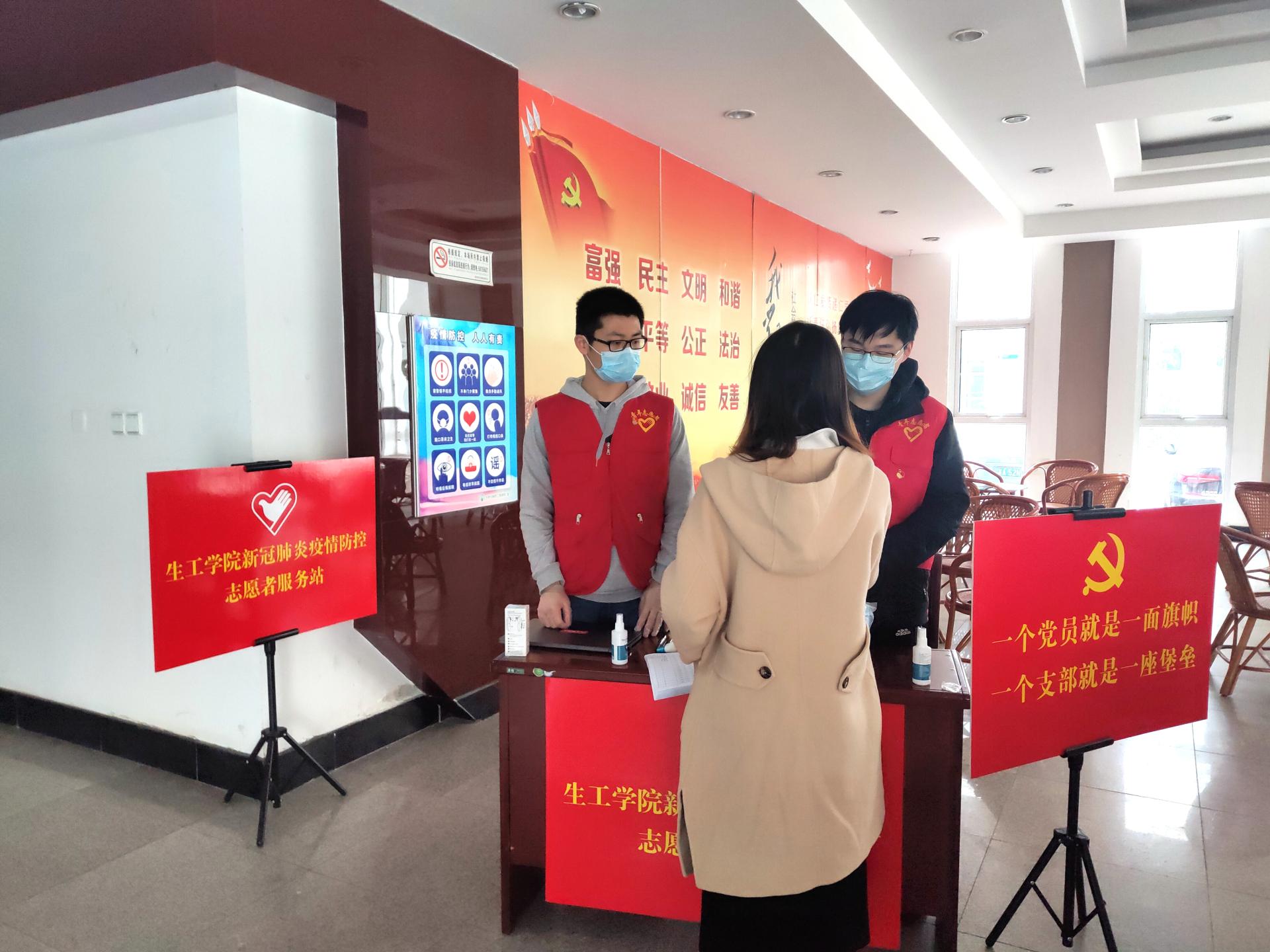 4月22日,根据安排,公司实验室有序错峰开放。早晨7时,由beat365亚洲体育官方网站研究生、本科生毕业班党员自发组成的志愿者队伍在生工学科楼一楼大厅开启了疫情防控期间体温检测工作。