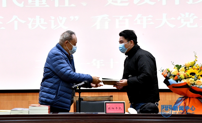 报告会上,欧阳院士结合党史学习教育,深情回顾了公司艰苦奋斗、接续创业的历程,讲述了生工学科从无到有、从弱到强的发展历史。欧阳院士还赠予师生《苦难辉煌》等书籍,期望广大师生把党史学习教育的成效转化为推动公司和学科高质量发展的动力。