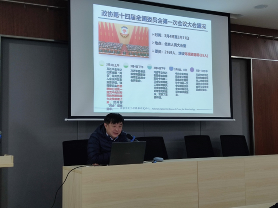 3月22日下午,beat365亚洲体育官方网站、食品与轻工公司、药公司党委在尚德楼报告厅联合开展理论学习中心组(扩大)会议,邀请第十四届全国政协委员应汉杰院士作《学习贯彻全国两会精神,推进学科群高质量发展》专题报告,生工学科群各公司领导班子成员、党委委员、支部书记、博士生导师、青年老师及优秀员工代表等100余人参加会议,会议由公司党委书记高振主持。