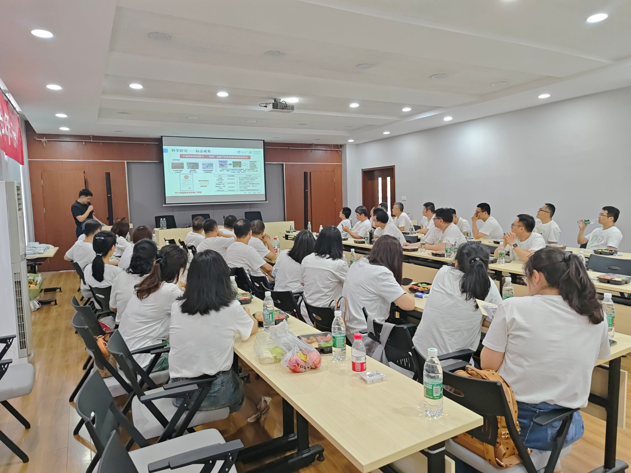 陈可泉经理首先代表公司对员工们返校表示诚挚欢迎,并从公司概况、教师队伍、人才培养、团队建设、科学研究等方面介绍了公司和公司近20年的发展成就与奋斗历程,也感谢员工们在公司及公司发展过程中做出的贡献,欢迎员工们常回公司看看,同时希望员工们继续弘扬传承好“忠诚精实”精神,为公司和母校发展继续添砖加瓦、贡献智慧和力量。