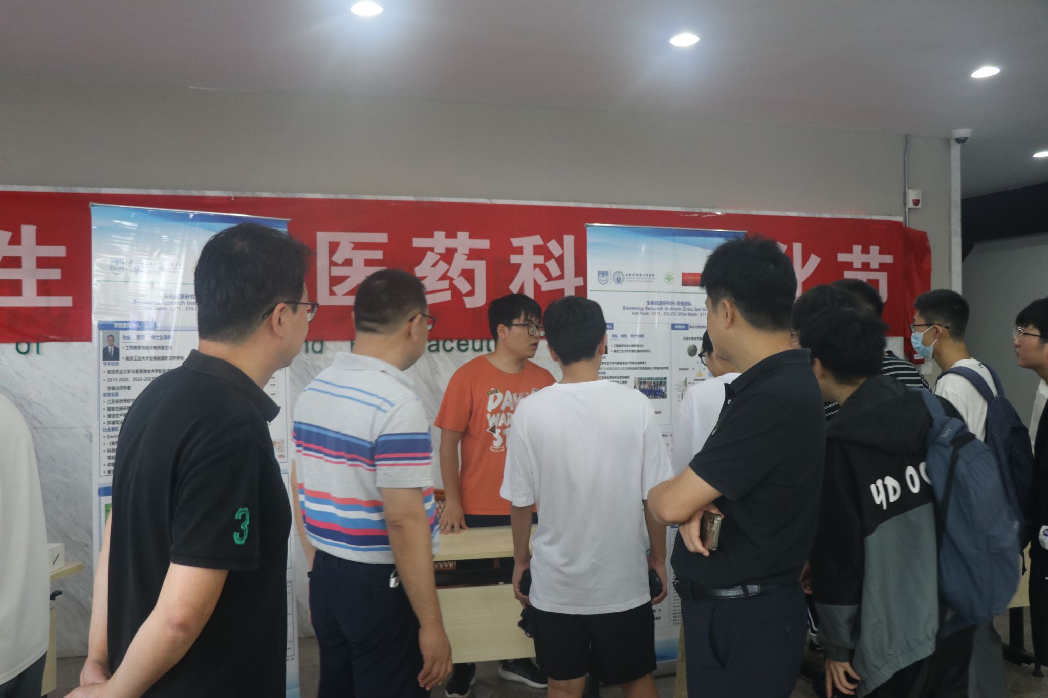 本次活动邀请中国工程院院士应汉杰教授、郭凯教授等八大课题组制作海报展板,活动现场邀请研究生志愿者与相关教授讲解本课题组的研究方向和科研成果,分享科研成果对社会经济发展巨大的推动作用,帮助同学们更加深入了解生物制造与医药研发领域,了解学科发展特色和优势,为同学们后期读研深造提供参考。