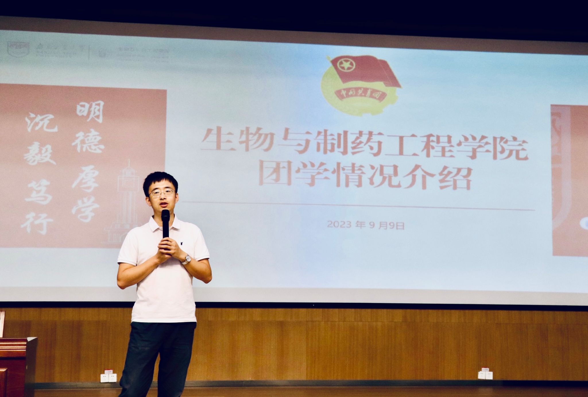 9月9日下午,生物与制药工程公司在笃学楼报告厅举行“牢记嘱托跟党走,挺膺担当勇作为”主题团课,beat365亚洲体育官方网站团委负责人张健做专题辅导。
