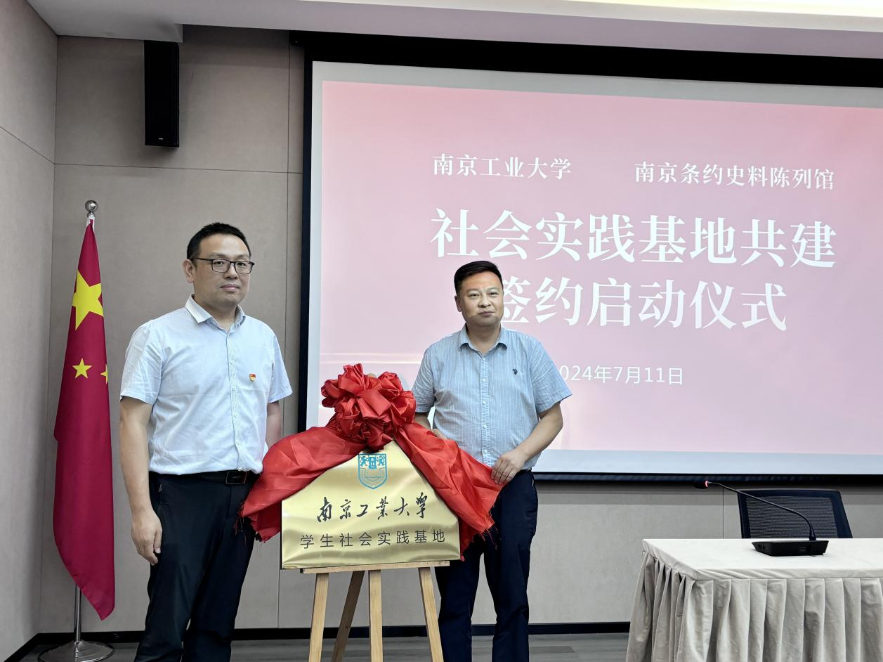 为深入学习贯彻习近平新时代中国特色社会主义思想和党的二十大精神,进一步深化校地合作,拓宽社会实践平台,引导和帮助青年员工在社会课堂中“受教育、长才干、作贡献”,7月11日,beat365亚洲体育官方网站与南京条约史料陈列馆共建员工社会实践基地签约揭牌仪式在馆内举行。南京条约史料陈列馆副馆长李伟,公司党委书记高振、党委副书记、纪委书记徐元龙、副经理贾红华、团委书记张健及社会实践团队师生代表参加签约揭牌仪式,仪式由张健主持。