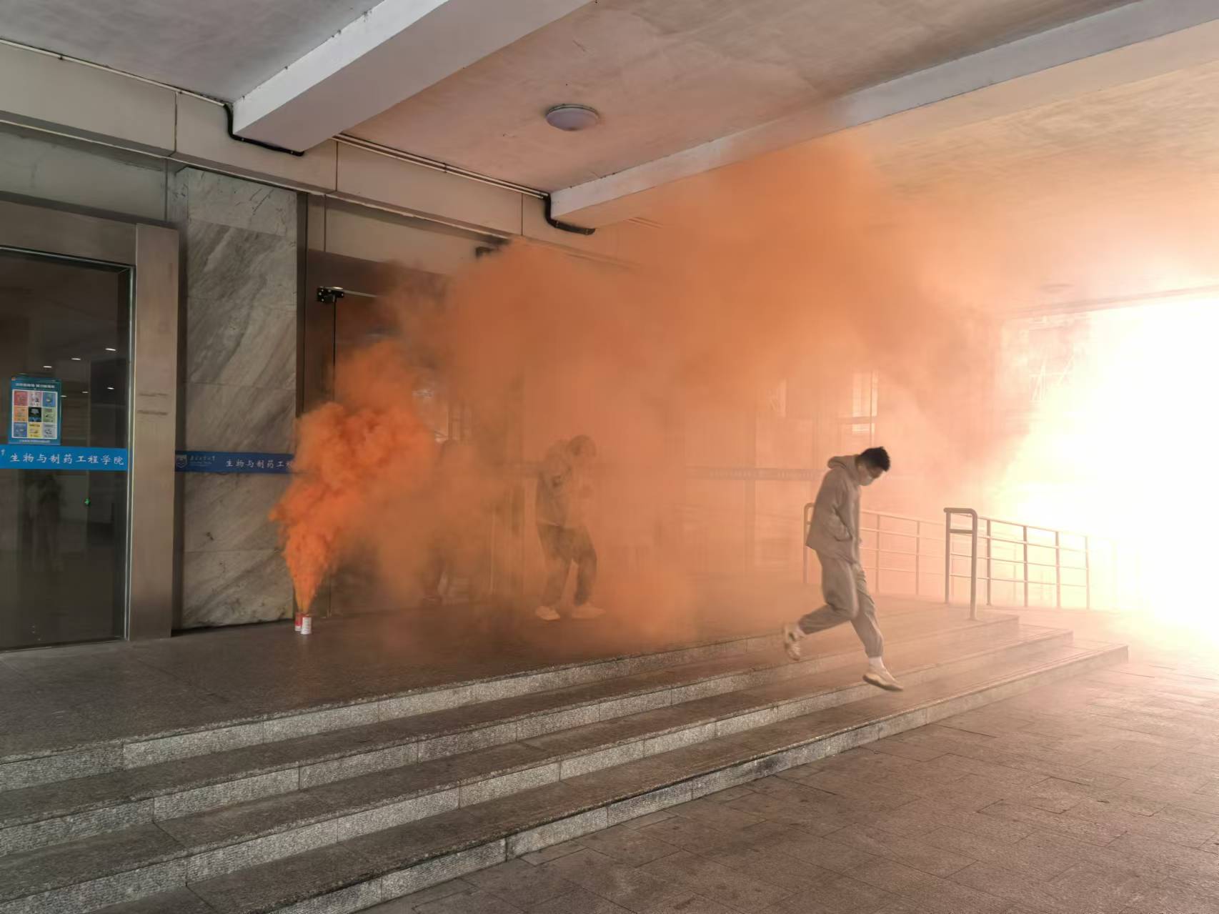 在消防疏散演练中,警报声在消防烟雾拉出时响起,公司近400名师生按预定疏散路线,快速有序地从实验室及办公室快速撤离到了指定安全区域。随后,校保卫处刘世伟老师对疏散演练进行了点评,并根据公司及公司特点,通过具体案例给师生宣讲了校园火灾预防、火场逃生及灭火常识等消防知识,最后用有奖问答方式现场考核了大家对消防安全知识的理解与掌握情况。培训结束后,还在尚德楼北侧广场进行了灭火毯、过滤式消防自救呼吸器以及灭火实战演练与操作,组织师生学习了灭火器使用方法及运用技巧,提高了师生的防火知识和技能。