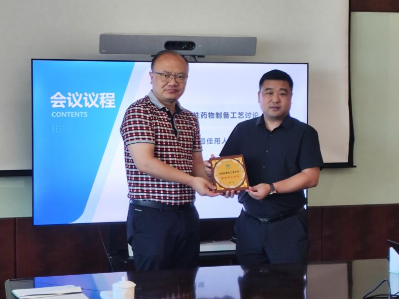 在江苏济川药业集团有限公司,研发总监李超带领企业研发骨干、公司员工代表仲乙、孙翔与同学们围绕手性药物研发难点进行了深入交流,指导教师与博士生们对手性药物绿色合成方法提出了自己的思路和策略。党委副书记徐元龙向济川药业多年来对公司毕业生就业工作给予的大力支持表示衷心感谢,并颁发了beat365亚洲体育官方网站最佳用人单位奖牌。博士团参观了济川健康科技馆,对企业深厚底蕴以及全产业链布局有了深入了解,对济川药业"以科技捍卫健康"的使命有了更直观的理解。